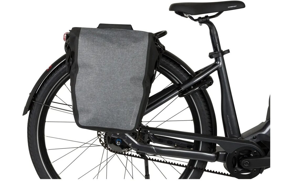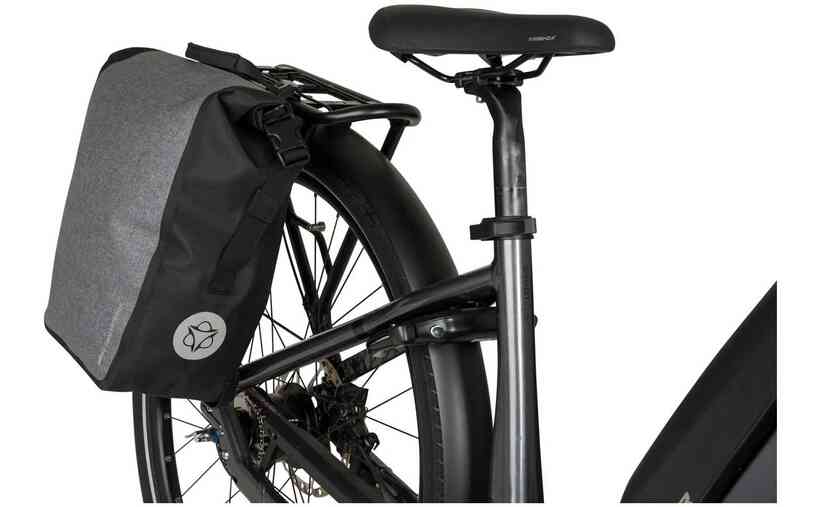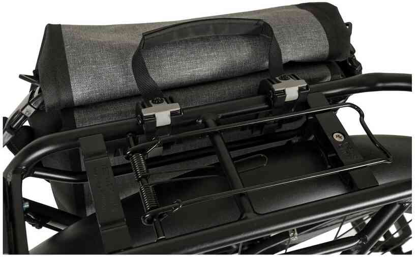Die Tasche lässt sich mühelos am Gepäckträger anbringen und wieder abnehmen. Zusätzlich ermöglicht ein abnehmbarer Schultergurt den komfortablen Transport abseits des Fahrrads.