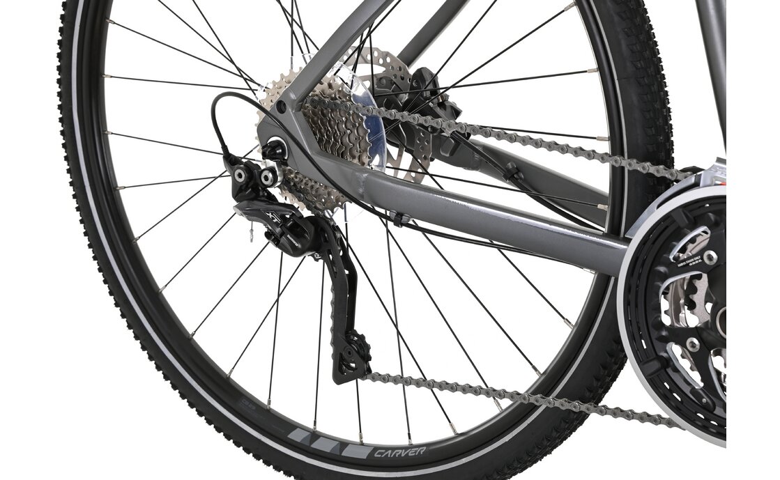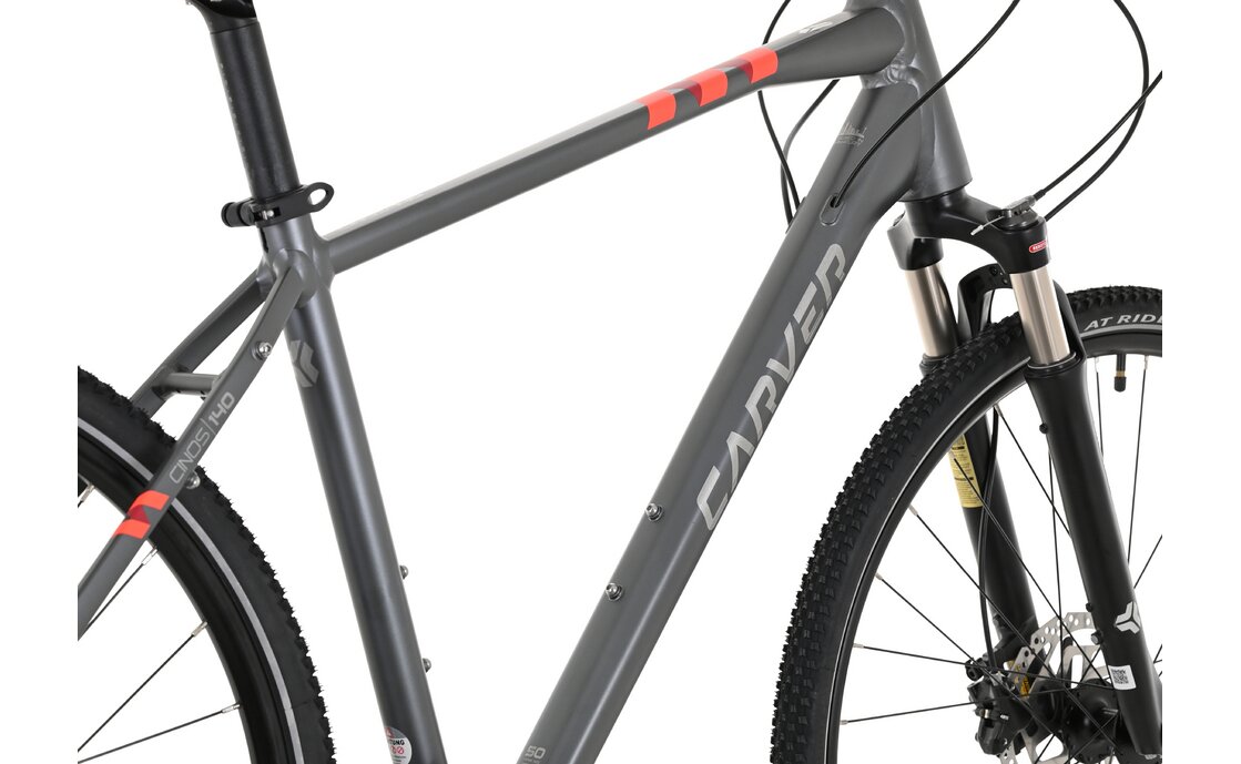 - Rahmen: Der leichte Aluminiumrahmen des Carver Cinos 140 sorgt für eine optimale Kombination aus Stabilität und Wendigkeit. Die sportliche Geometrie ist speziell für dynamische Fahrten auf unterschiedlichen Untergründen entwickelt und richtet sich an aktive Fahrer, die Wert auf Fahrkomfort und Fahrspaß legen.