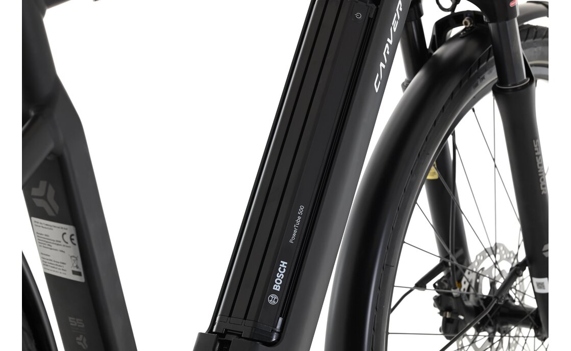 Der Antrieb des Route E.510 von Carver ist ein wahres Kraftpaket! Der Bosch Mittelmotor Performance Line CX Gen4 mit 250 Watt sowie einem Drehmoment von 85 Nm stellt das Herzstück des E-Trekkingrads dar. Mit dem leistungsstarken Bosch-Motor meisterst du mühelos auch längere Strecken und erreichst dein Ziel mit Leichtigkeit. Der Akku mit einer Kapazität von 500 Wh ermöglicht eine effiziente Nutzung und der starke Antrieb des Motors macht das Bewältigen von Steigungen zum Kinderspiel.