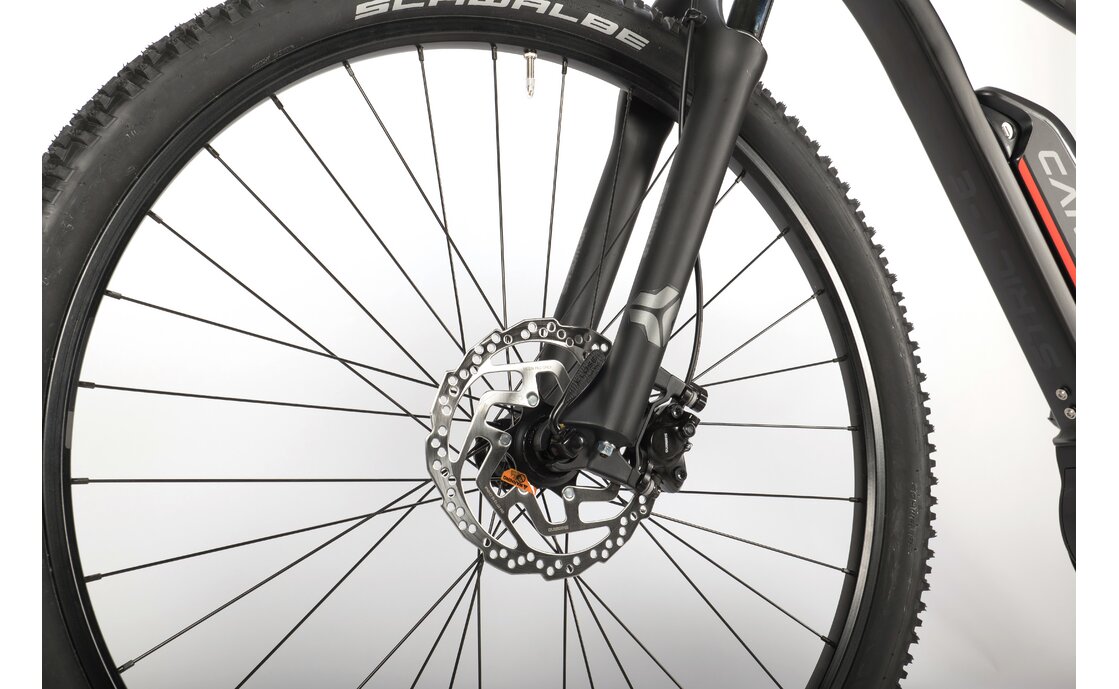 Das E-Hardtail ist mit einer SR Suntour XCM HLO DS Gabel ausgestattet. Mit einem Federweg von 100 mm bietet sie ausreichend Komfort und Stabilität für Touren in leichtem Gelände. Egal ob steile Anstiege oder rumpelige Abfahrten, mit dem E-Hardtail bist du bestens ausgerüstet für deine nächsten Gelände-Touren.
