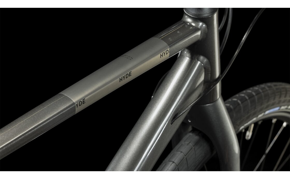 - Rahmen: Der Aluminiumrahmen des Cube Hyde gewährleistet nicht nur eine hohe Stabilität, sondern auch ein sportliches Fahrgefühl. Die ausgeglichene Geometrie ist ideal auf Vielseitigkeit ausgelegt und spricht sowohl sportliche Fahrer als auch Freizeitradler an, die Wert auf Fahrkomfort und Spaß legen. Perfekt geeignet für sowohl urbane als auch geländetaugliche Einsätze, bietet dieses Bike die beste Voraussetzung für unvergessliche Abenteuer.
