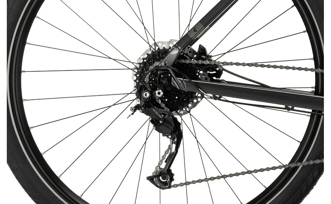 - Schaltung: Das Shimano Alivio RD-M3100-SGS Schaltwerk sorgt für präzise Gangwechsel und ist ideal für vielseitige Touren. Mit der 27-Gang-Kettenschaltung eignet sich dieses Crossbike besonders für sportliche Pendler und Fahrer, die gerne auf Feld- und Waldwegen unterwegs sind.