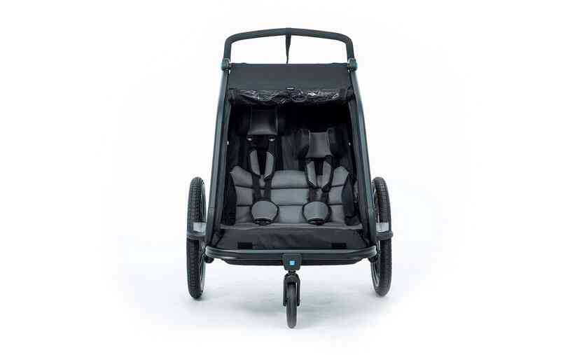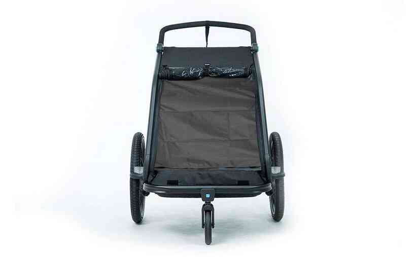 Dank Sonnenschutz werden die kleinen Fahrgäste nicht bei ihren Nickerchen geblendet. Der Spritzschutz hält die Kids auch bei matschigen Fahrten trocken. Die Sitz- und Rückenpolster sowie Kopfpolster mit Helmpocket, machen die Fahrt für die Kleinen zum komfortablen Vergnügen. Die Federung ist individuell einstellbar, je nach Untergrund und Gewicht. Mit dem zusätzlich erhältlichen Jogger Kit lassen sich alle Ausflüge noch flexibler gestalten.