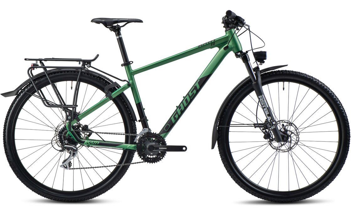 Das Ghost Kato EQ 29 AL ist ein All-Terrain-Bike (ATB) und für alle, die ein vielseitiges Fahrrad suchen, das sowohl im Straßenverkehr als auch auf unebenen Waldwegen glänzt. Mit seiner robusten Diamantrahmenkonstruktion und der komfortablen Federgabel bietet es Fahrspaß in jeder Situation. Die 24-Gang-Kettenschaltung sorgt dafür, dass du sowohl beim Pendeln als auch bei Abenteuern abseits der Straße stets die passende Übersetzung parat hast. Dank die hydraulische Scheibenbremse bist du jederzeit sicher unterwegs, egal ob bei Nässe oder Trockenheit. Dieses Alleskönner-Bike erfüllt die Anforderungen der StVZO und ist somit perfekt für alle, die ein zuverlässiges und flexibles Fahrrad benötigen.