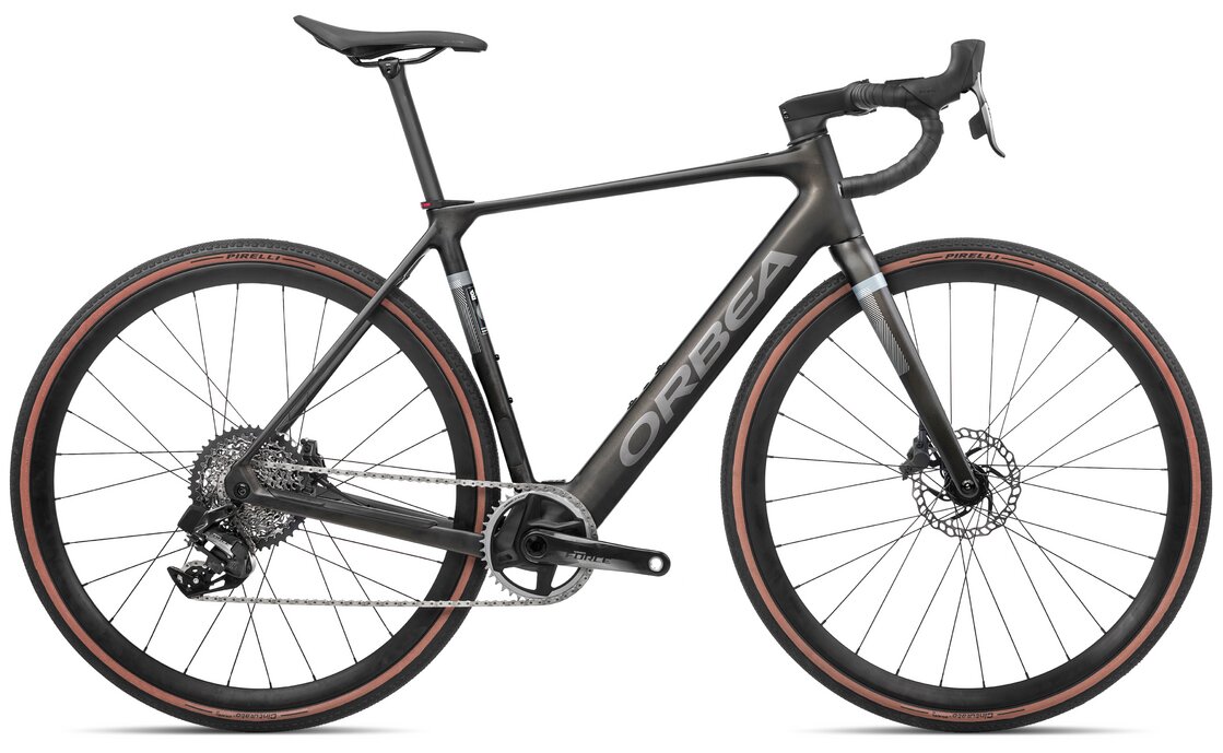 Orbea Gain Carbon OMR Monocoque Struktur, integrierte Sattelklemme mit STVZO-Licht, ICR-Zugführung, Steckachse 12x142mm hinten, Gewinde M12x2 P1, Flat Mount Scheibenbremse, Reifen max. 700×35, BB386 EVO, Mahle X20 AMC-Stecker