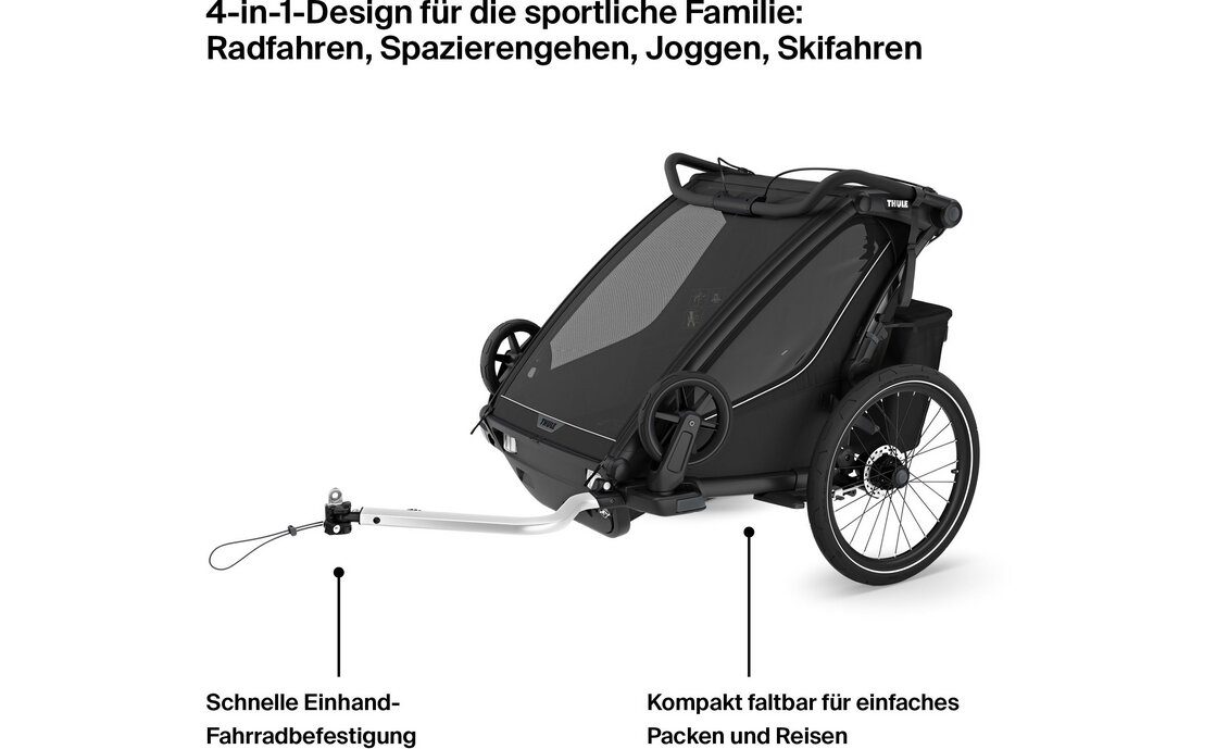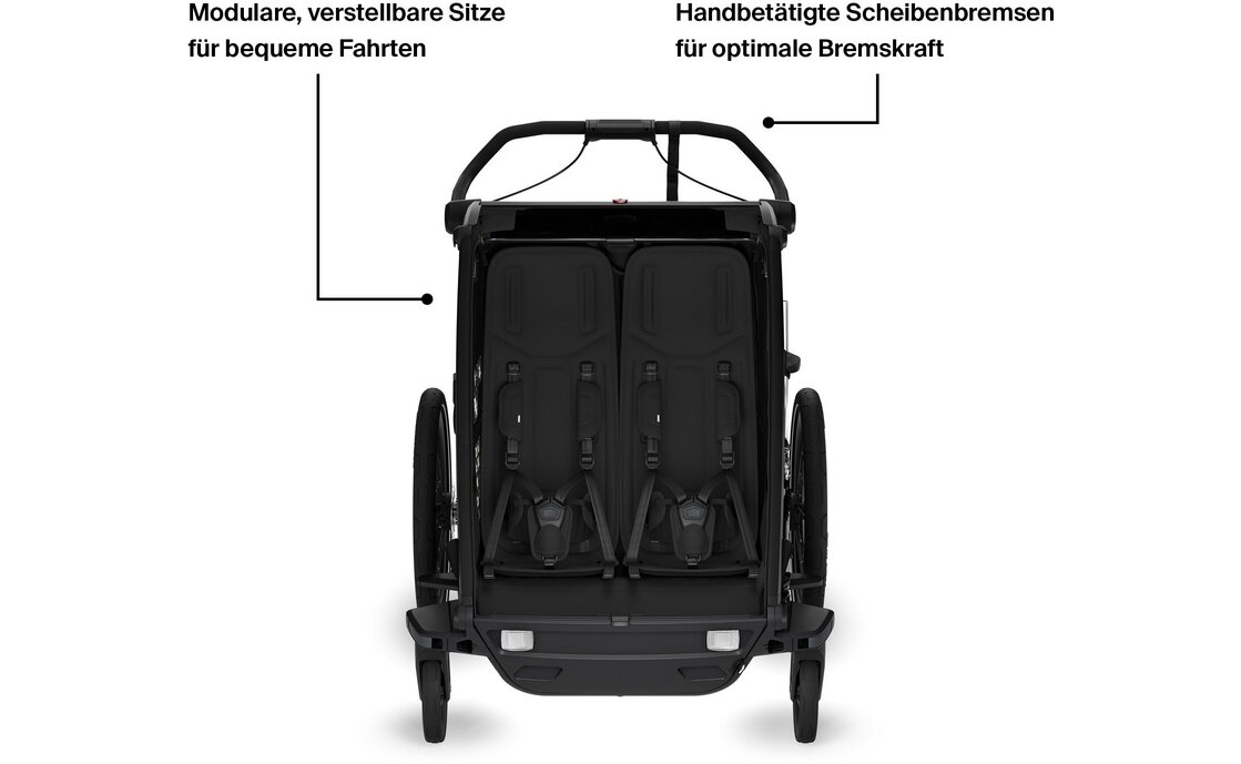 Der Chariot Sport 2 Double ist der ideale Multifunktionsanhänger für aktive Familien mit zwei Kindern. Dieser Anhänger bietet außergewöhnliche Vielseitigkeit und Komfort, perfekt für Aktivitäten wie Joggen, Radfahren, Spazierengehen und sogar Skilanglauf. Der Chariot Sport 2 Double überzeugt durch seine hochwertige Verarbeitung, erstklassige Materialien und durchdachte Details. Mit seiner ausgezeichneten Federung und der Möglichkeit, verschiedene Sets anzubringen, sorgt dieser Anhänger für eine sichere und angenehme Fahrt für beide Kinder.